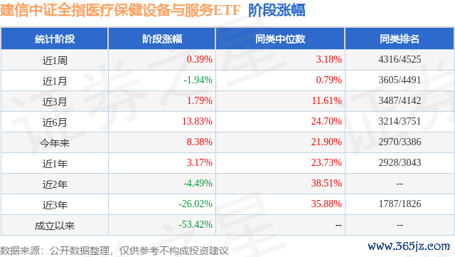 从业绩表现来看,建信中证全指医疗保健设备与服务ETF基金过去一年净值涨幅为-3.83%,在同类基金中排名2043/2216,同类基金过去一年净值涨幅中位数为11.09%。而基金过去一年的最大回撤为-25.91%,成立以来的最大回撤为-65.79%。