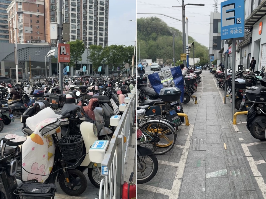 有外卖小哥吐槽,周五、周末的停车形势更为严峻,曾经找个车位花了15分钟。一名餐饮店员工告诉记者,虽然商场提供了员工的地下非机动车停车库,但需要绕一大圈进入商场后门,还要收取一定的停放费用,且没有充电的条件,不如就近停在人行道上。