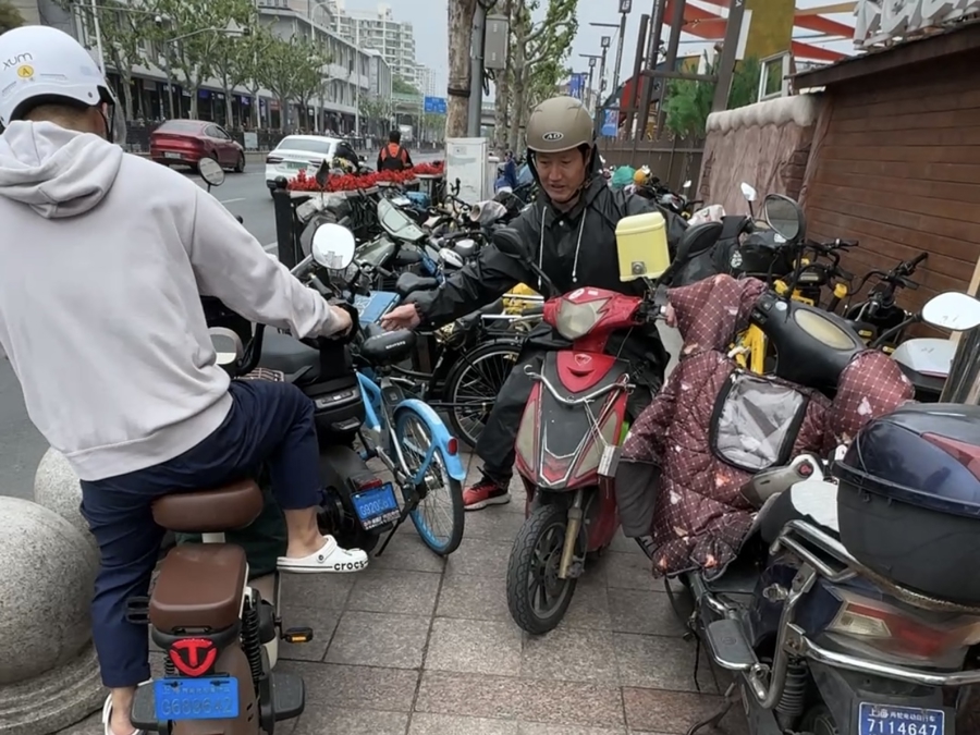 4月18日19时15分,市民张先生前往百联中环购物广场路上目睹了危险的一幕:一个大人带着小孩穿越商场前的斑马线时,由于路街沿停放的电动自行车(下简称“电瓶车”)过多溢出到马路上,小孩不小心一头撞在了一辆外卖车辆的保险杠上,引发争吵。最近一个月来,张先生目睹了多次人车发生“摩擦”冲突的情形,“这里停放外卖、居民的电瓶车十分密集,也是非机动车、行人和机动车交会的地带,有什么办法可以改善?”