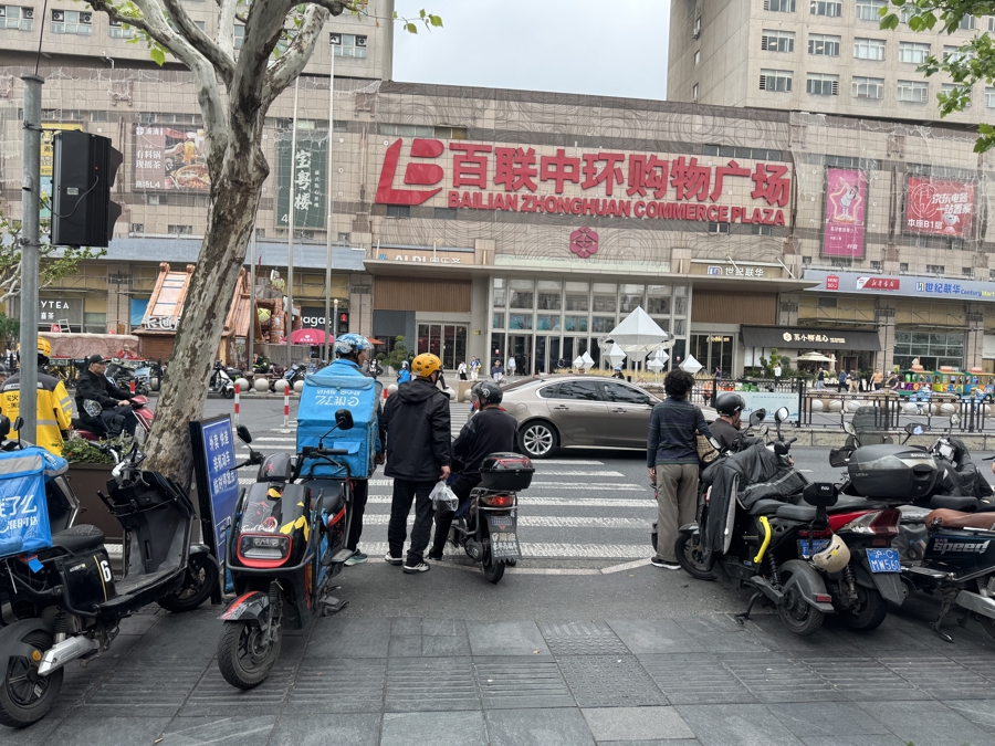 张先生居住在百联中环购物广场附近。对于这家浦西的老牌商业中心,他怀有一份“爱恨交织”的情感。商场拥有70多家餐饮商家,也是亲子遛娃的胜地,周边居民区密集。由于距离地铁站不近,电瓶车成为了消费者抵达商场的主要途径之一。加上外卖的车辆,商场门口的真光路聚集了越来越多电瓶车。