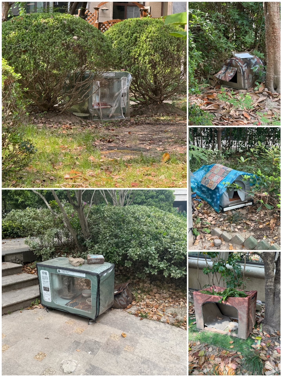 海上国际花园小区内,猫屋几乎“随处可见”,只不过,有的是智能猫屋,有的是居民自己搭建的。